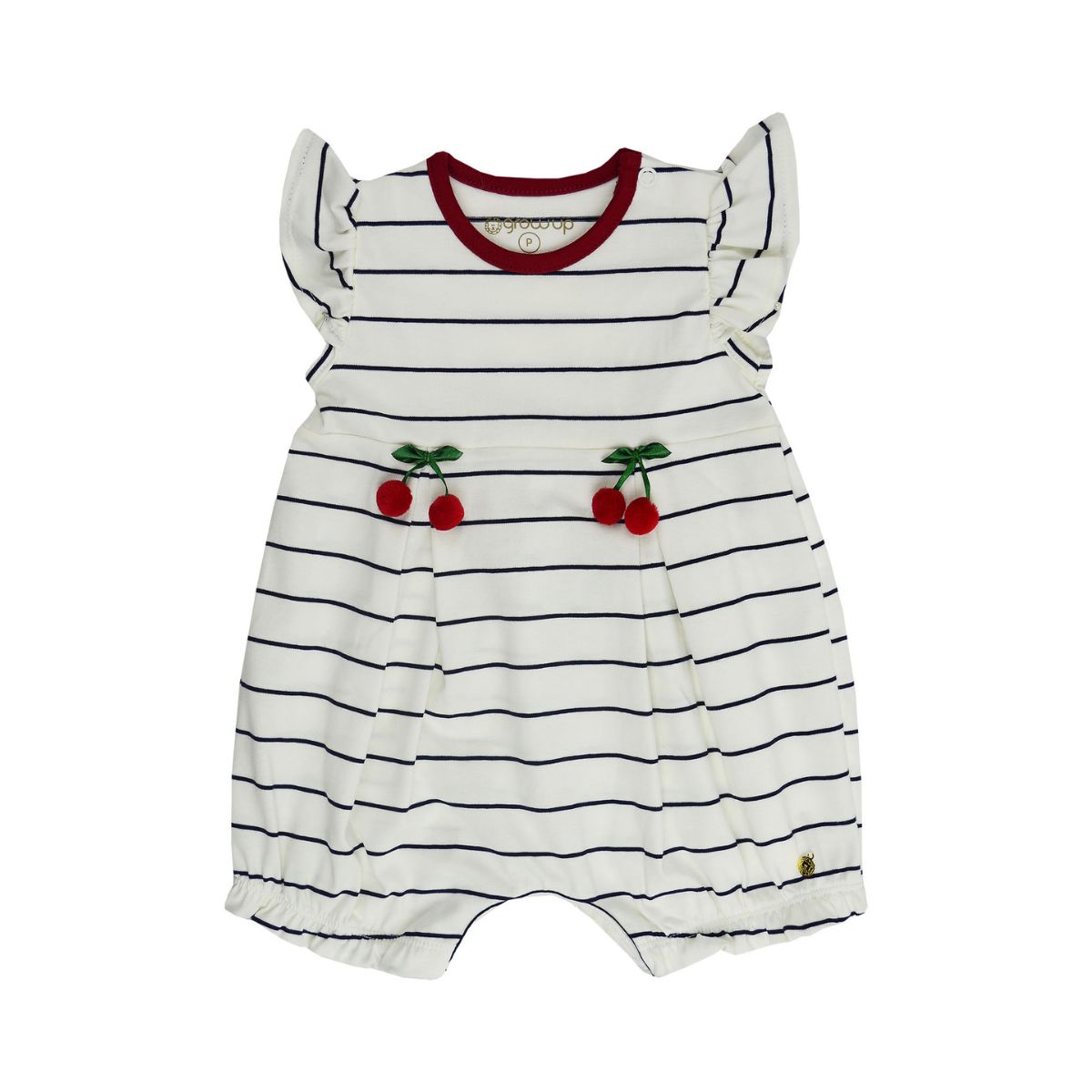 O Banho de Sol Mariner Off White é a escolha perfeita para vestir o bebê nos dias mais quentes com muito conforto e estilo. Com design moderno e delicado, ele traz listras clássicas em marinho, mangas com babadinhos e um charmoso bordado de cerejinhas que encantam em cada detalhe.