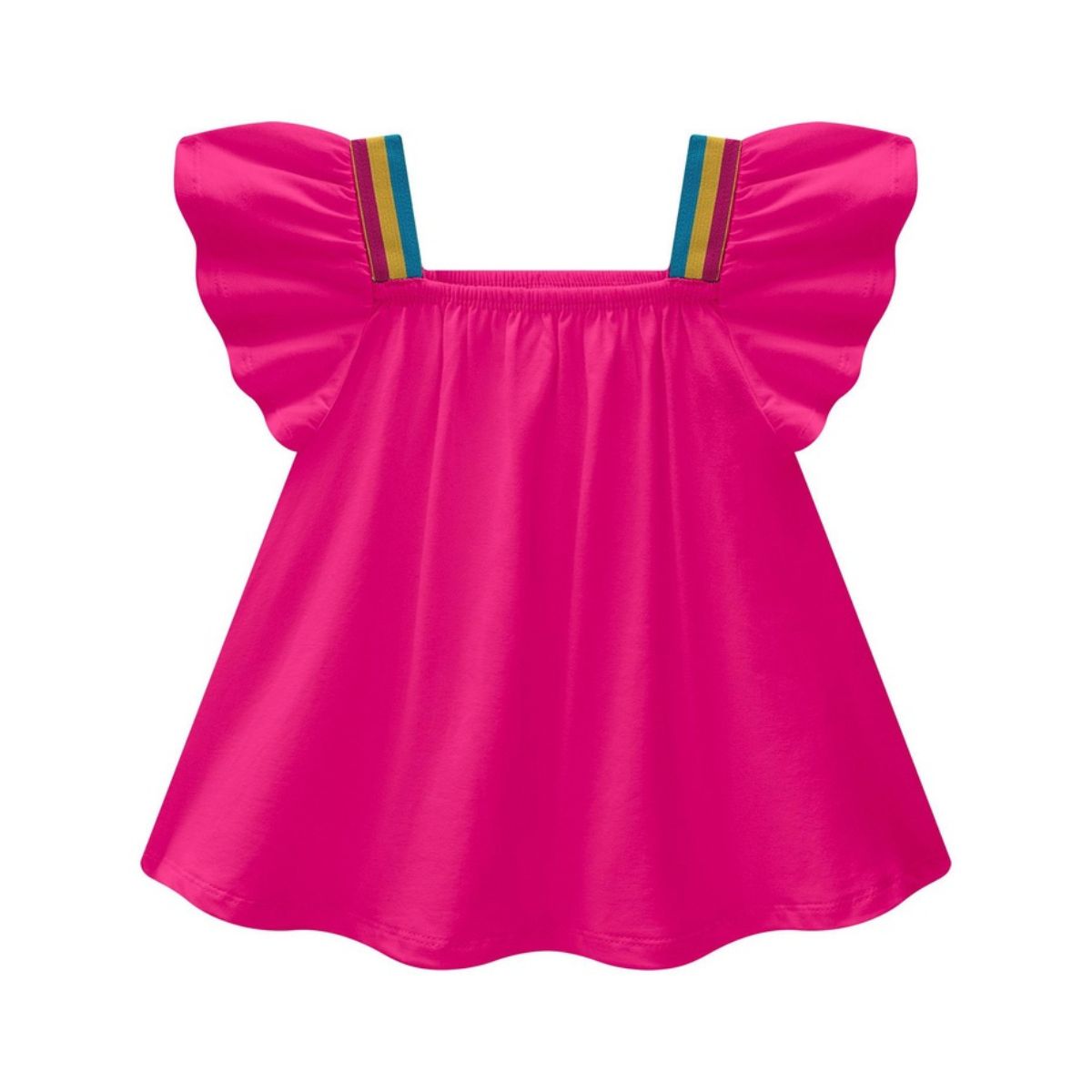 Cheia de charme e cor, a Blusa Infantil Feminina Alças com Detalhe Colorido Pink é perfeita para as meninas que adoram um visual alegre e moderno!