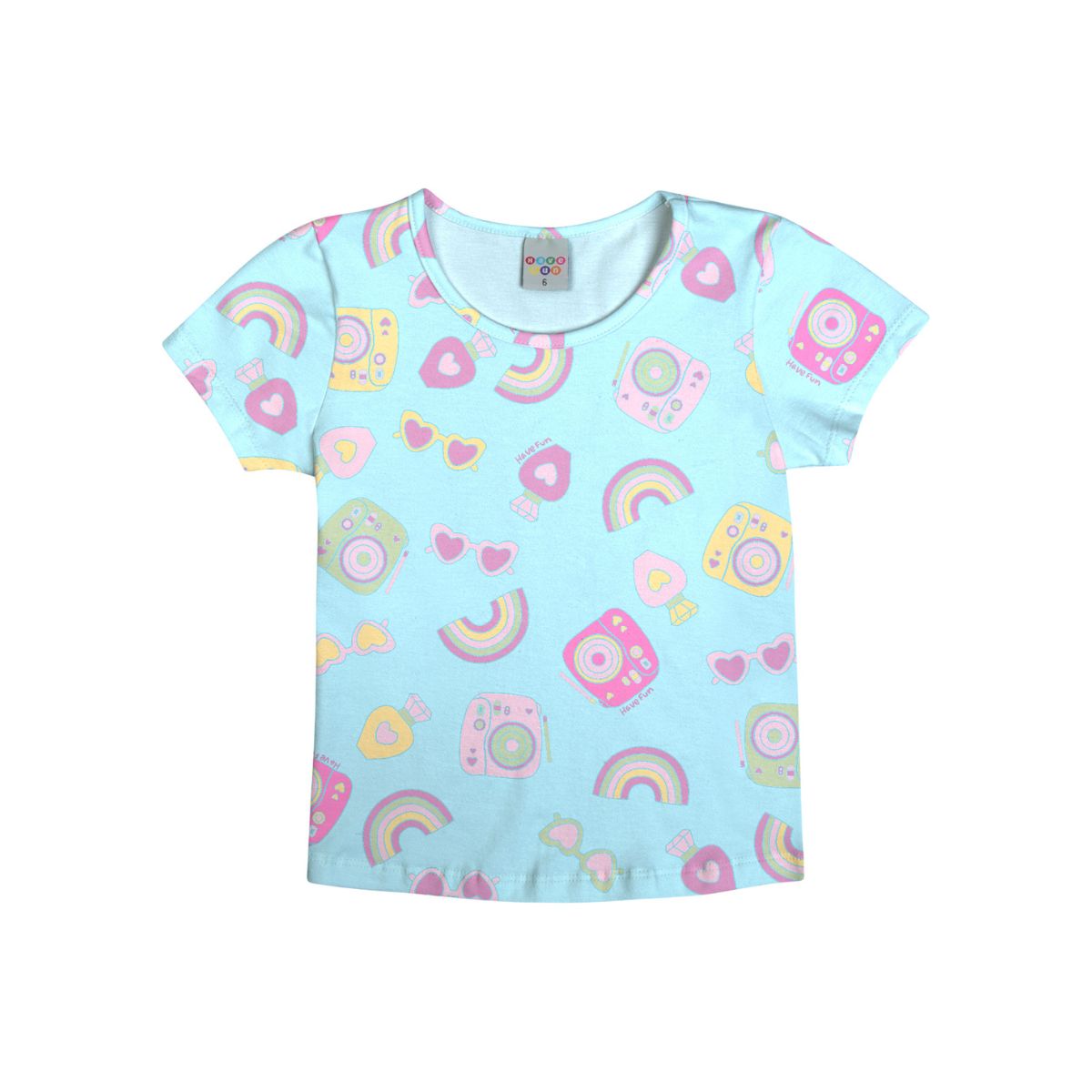 A Blusa Estampada Cotton Azul Claro da BB Chic é sinônimo de alegria e criatividade! Com uma estampa encantadora de arco-íris, câmeras e corações, ela transforma qualquer look básico em algo especial.