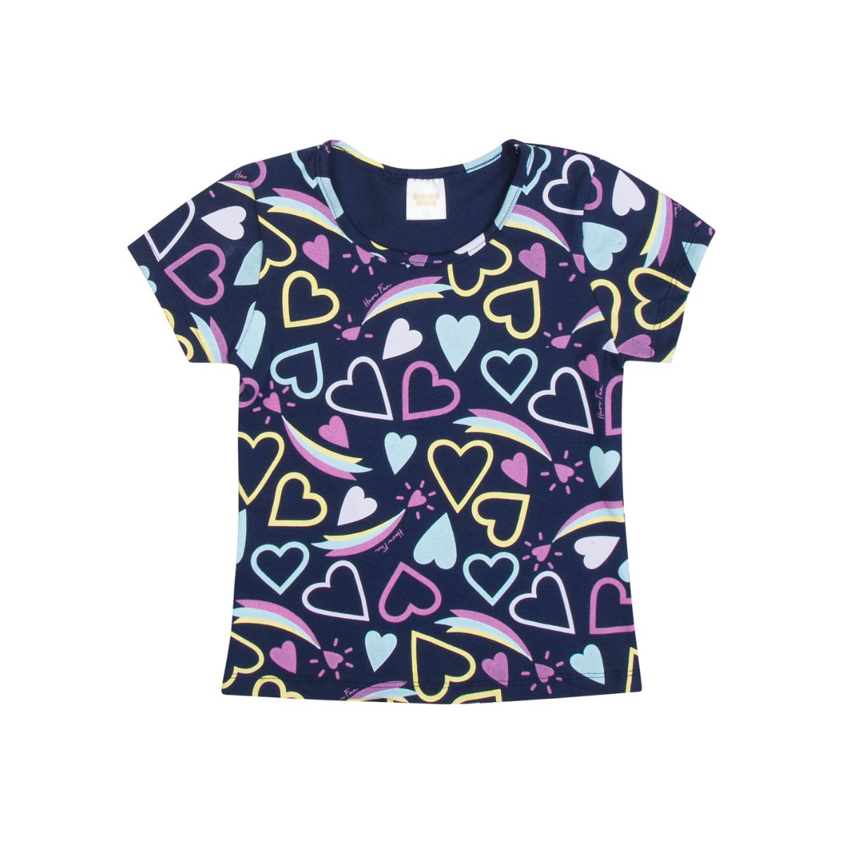 A Blusa Estampada Cotton Azul Marinho da BB Chic é a peça perfeita para quem ama cor e alegria no dia a dia! Com uma estampa encantadora de corações e arco-íris em tons vibrantes, essa blusinha traz diversão e estilo para o visual das pequenas.