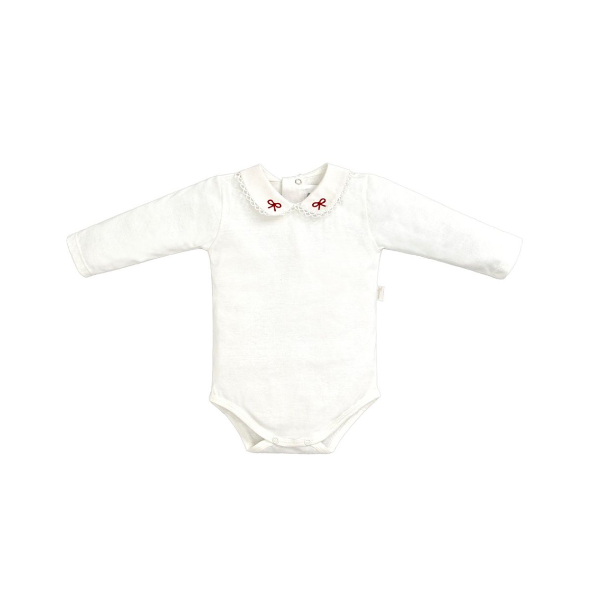 O Body Bebê Manga Longa com Gola Bordada e Laço é perfeito para quem busca delicadeza, conforto e um toque sofisticado no visual do bebê.
