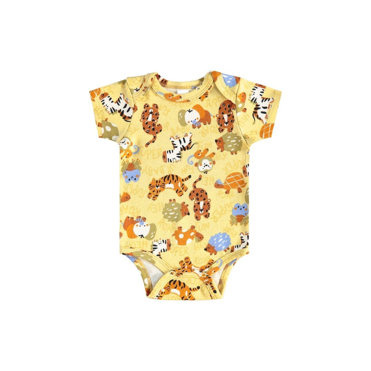 O Body Bebê Estampado animais amrelo é uma peça charmosa, prática e confortável, perfeita para acompanhar o dia a dia dos pequenos com muito estilo. Seu design moderno com estampa alegre e delicada deixa o visual mais divertido e cheio de personalidade.