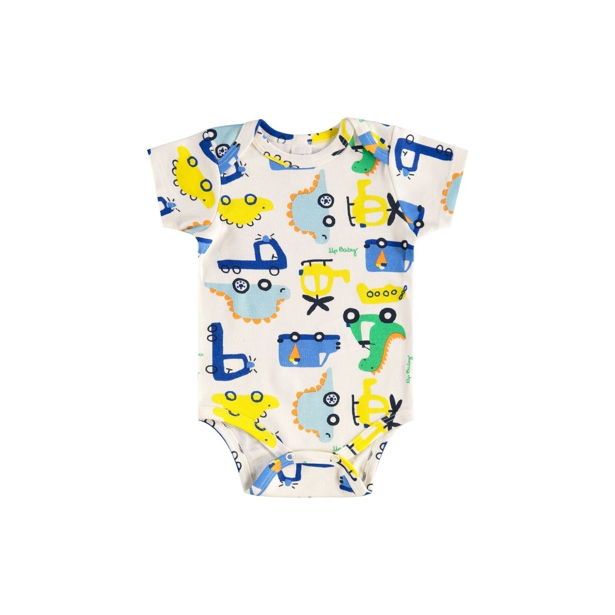 O Body Bebê Estampado Dino Móvel Off White vai conquistar os corações das famílias com seu visual alegre e cheio de personalidade. A peça traz estampa divertida de dinossauros com rodinhas, acompanhados de outros elementos lúdicos que deixam o look encantador.