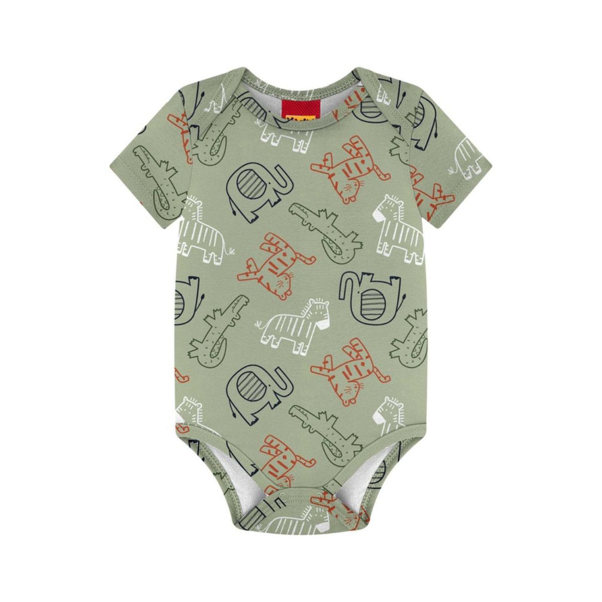 O Body Bebê Manga Curta Verde Estampa Safari é a escolha perfeita para acompanhar o seu pequeno nas descobertas do dia a dia!