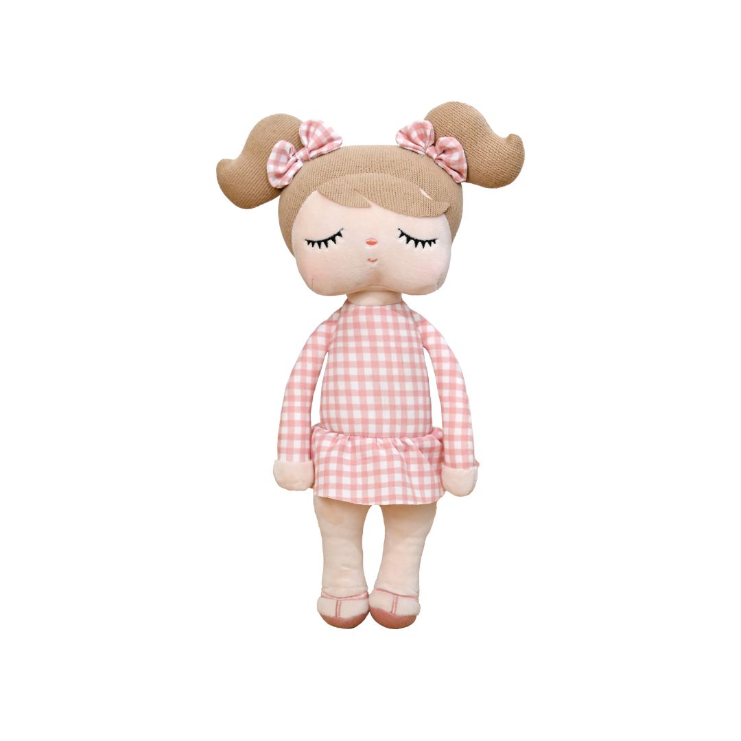 A Boneca Angela Jujuba traz todo o encanto das pelúcias Metoo para acompanhar os primeiros sonhos dos pequenos com suavidade e fofura. Feita inteiramente em pelúcia macia, ela veste um maiô de manga longa em estampa quadriculada rosa e calça uma sandália de dedo charmosa, completando o visual com laços combinando nos cabelos.