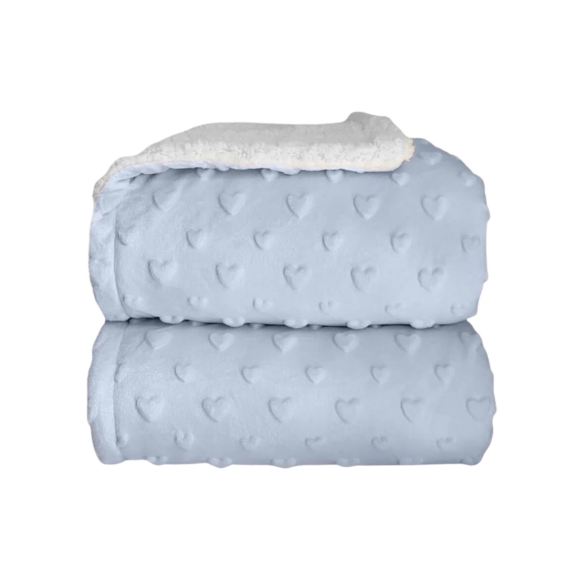 Aposte no conforto e na delicadeza do Cobertor Sherpan Hearts Azul Bebê e proporcione ao seu pequeno um inverno cheio de carinho!