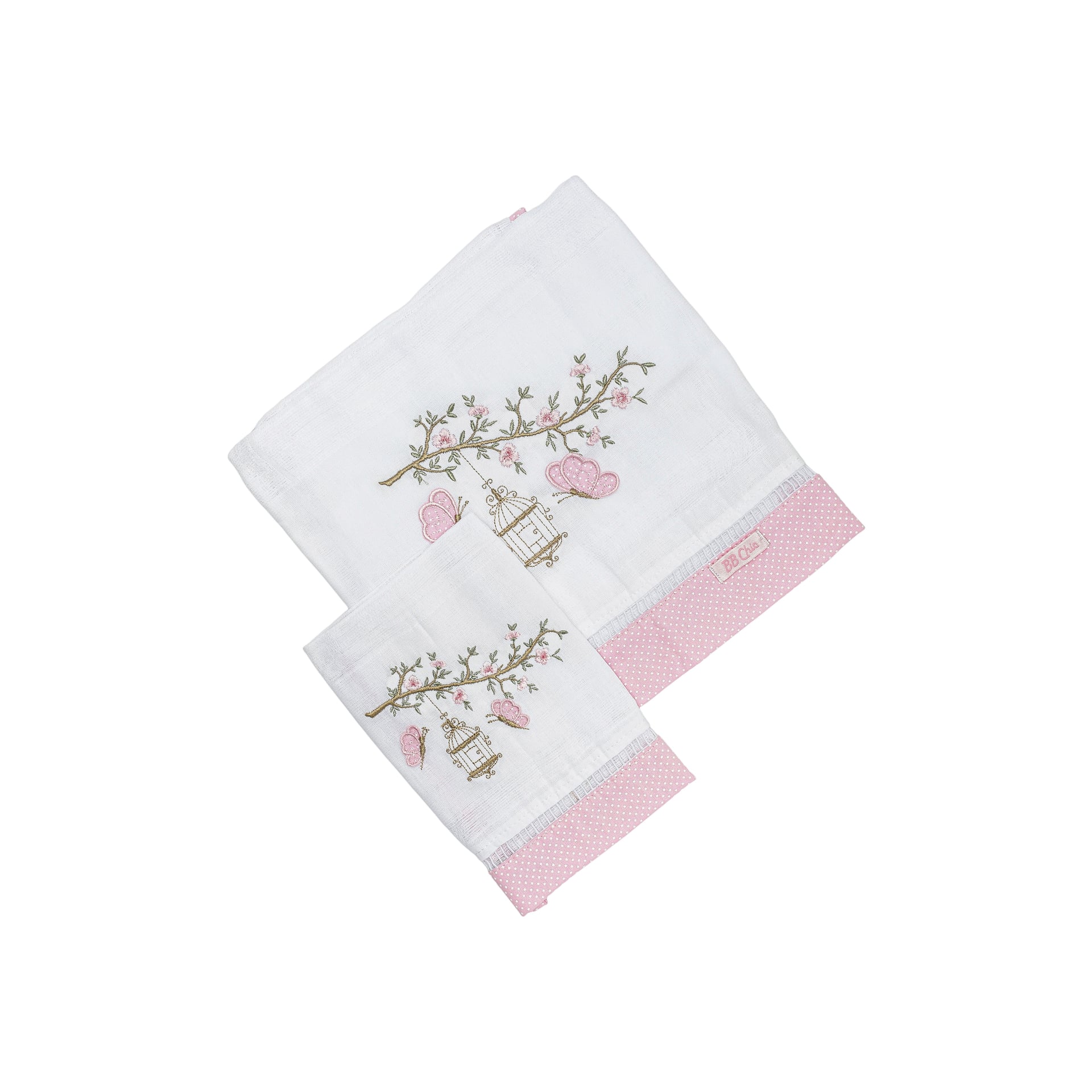 Com o Conjunto 2 Fraldas Bordado Borboleta Poá Rosa da BB Chic, você garante estilo, carinho e cuidado para o seu bebê em cada detalhe do enxoval.