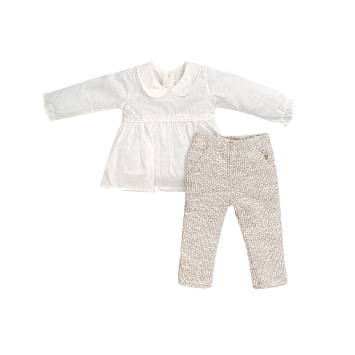 O Conjunto Bebê Bata Manga Longa com Calça em Tweed é perfeito para compor um look sofisticado, delicado e extremamente confortável.