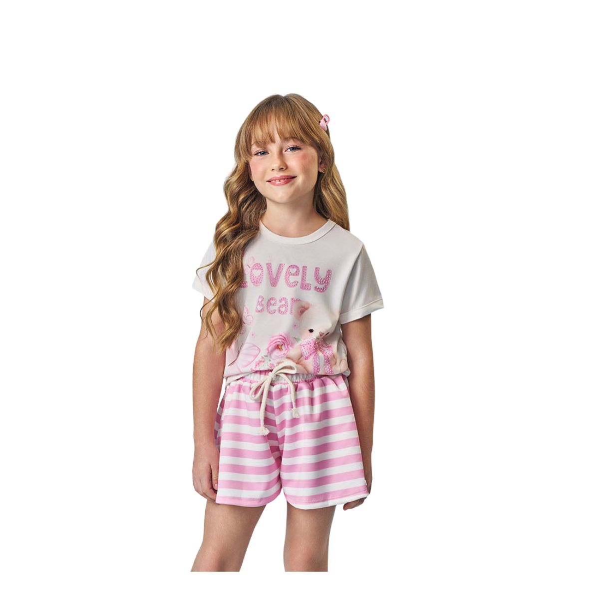 O Conjunto Infantil BB Chic Blusa e Shorts Listrado Ursinho é a escolha perfeita para vestir as pequenas com conforto, delicadeza e um visual encantador.