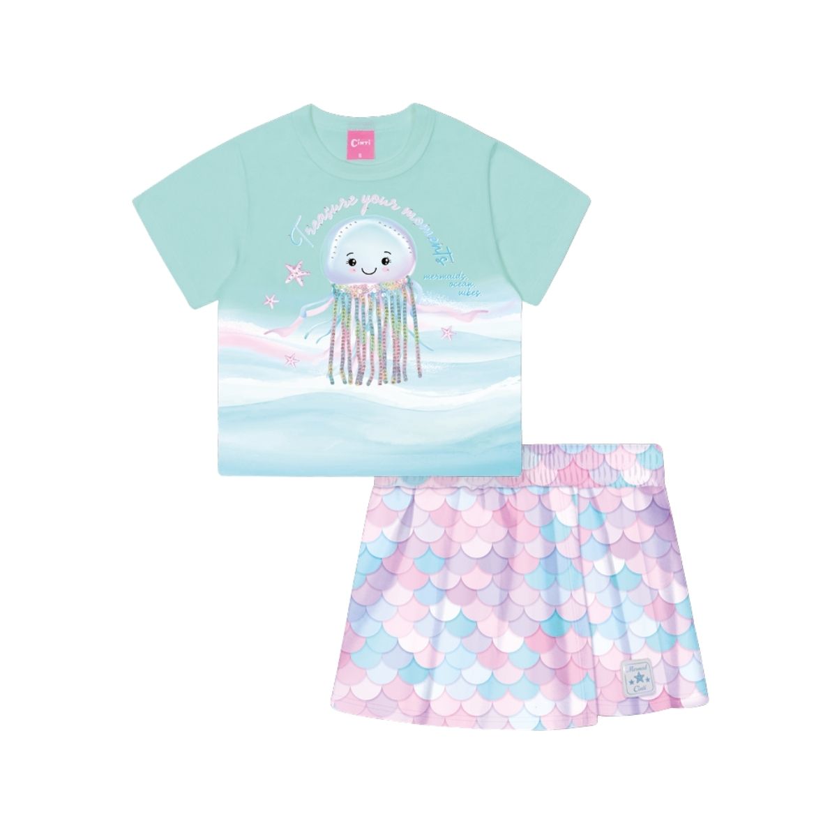 Um look encantador e leve para o dia a dia das pequenas! A blusa, em tecido delicado e respirável, oferece frescor e suavidade sobre a pele, enquanto a estampa de escamas verde traz um toque de fantasia e originalidade ao visual.