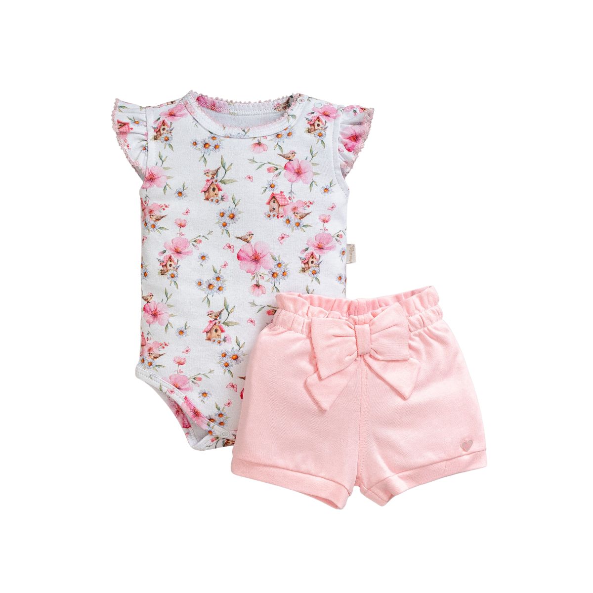 Com o Conjunto Body Estampado Shorts Suedine Rosa, seu bebê estará pronto para curtir cada momento com frescor, conforto e muita fofura.
