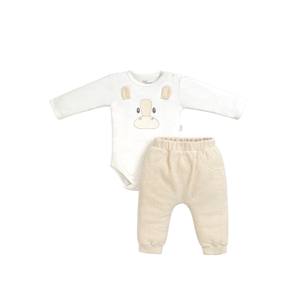 Ideal para dias mais frescos, esse conjunto mantém o bebê aquecido com suavidade, sem abrir mão da liberdade de movimento.