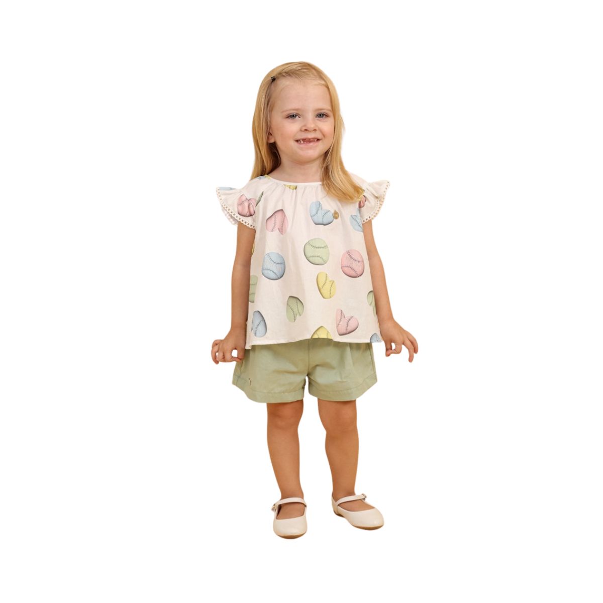 Com o Conjunto Confete Corações Verde da BB Chic, sua pequena vai se destacar com um visual encantador e cheio de amor.