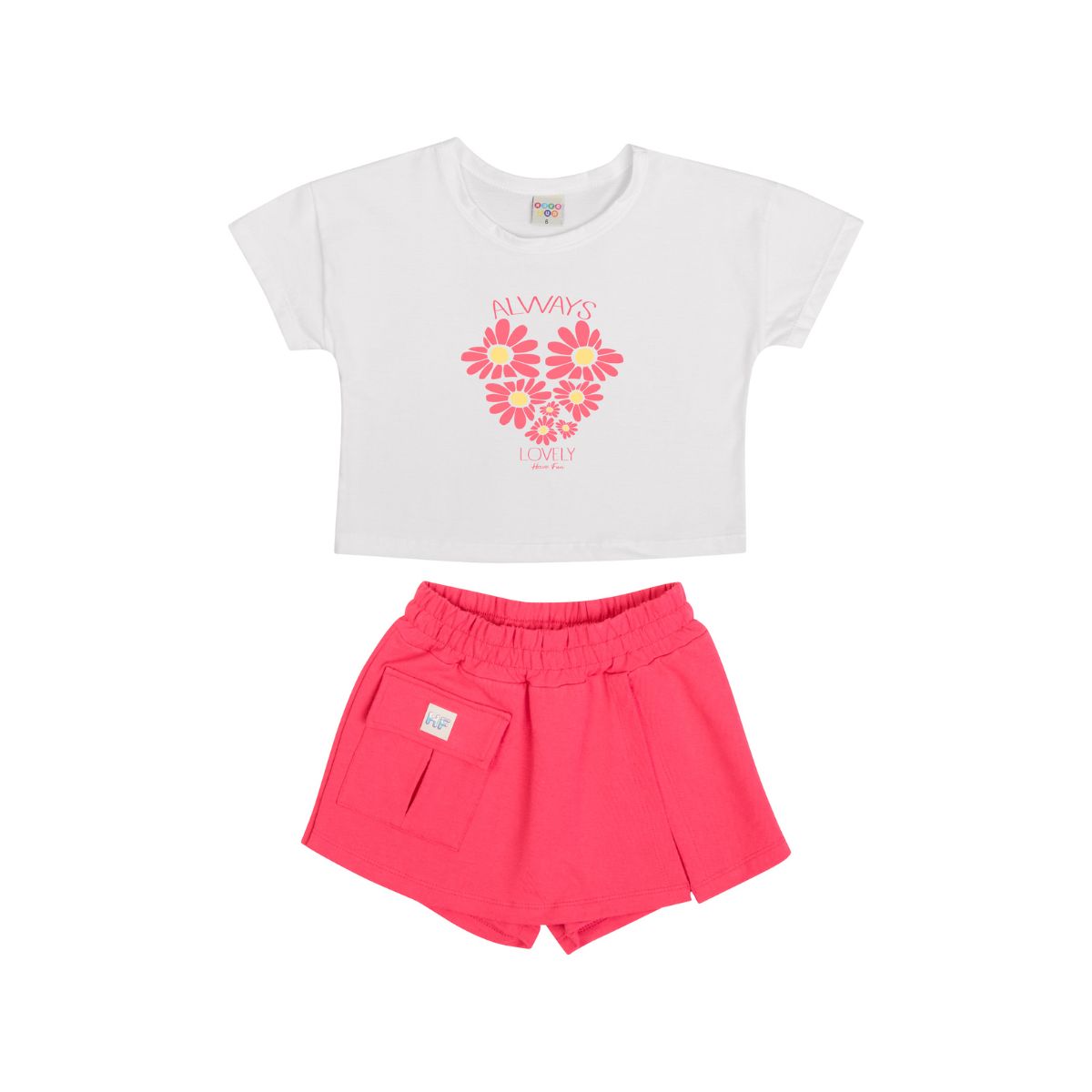 A blusa em meia malha tem modelagem leve, mangas curtas e uma estampa de coração florido que transmite doçura e alegria. Já o shorts saia em molecotton traz o visual moderno do shorts com o charme da saia, oferecendo liberdade e estilo ao mesmo tempo.