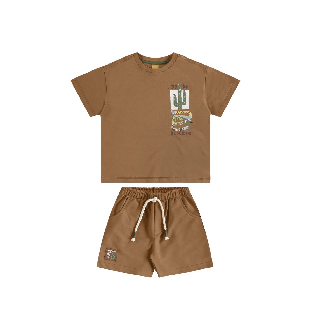 A estampa deserto, com elementos como cacto, traz um visual moderno e lúdico, perfeito para crianças cheias de personalidade.
