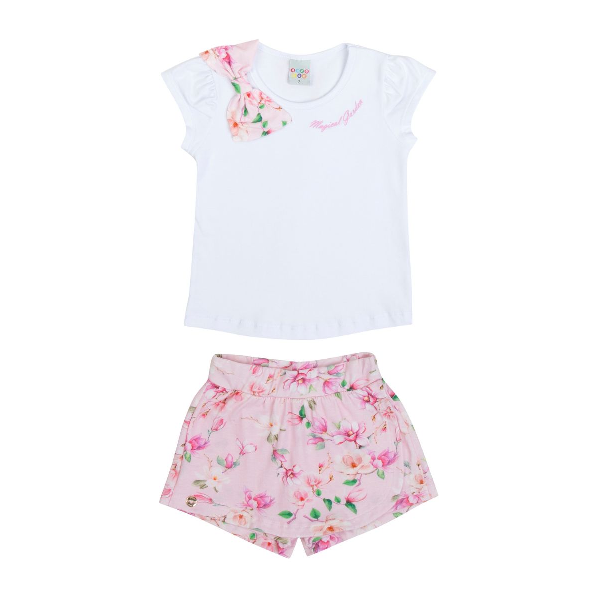 A blusa em cotton possui um adorável laço aplicado, dando um toque sofisticado e feminino à peça. Já o shorts saia em cotton digital apresenta uma estampa suave e alegre, com tecido macio e caimento impecável, que proporciona liberdade para brincar à vontade.