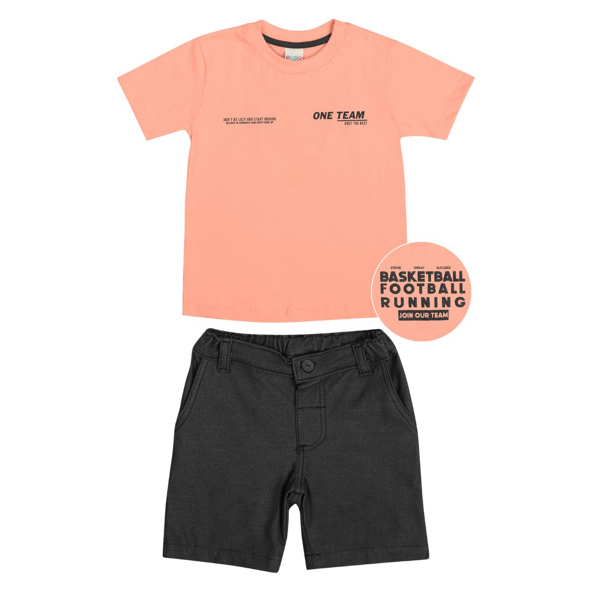 O Conjunto One Team Camiseta Meia Malha Laranja Bermuda Molecotton da BB Chic é a escolha ideal para os meninos que adoram se vestir com conforto e personalidade. A camiseta em meia malha laranja traz uma estampa moderna com a frase “One Team” e elementos esportivos, dando um toque urbano e cheio de atitude ao visual.