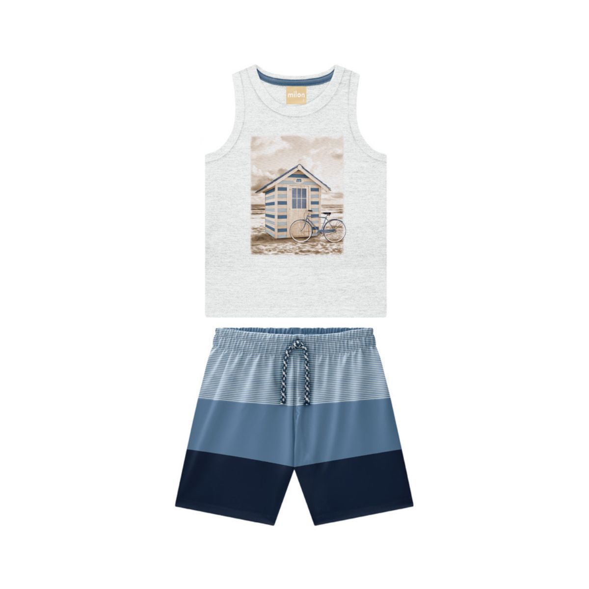 Acompanha bermuda leve e confortável com listras em tons de azul, que além de estilo garante frescor e praticidade para o dia a dia das crianças. Uma combinação perfeita para passeios, férias ou momentos descontraídos.