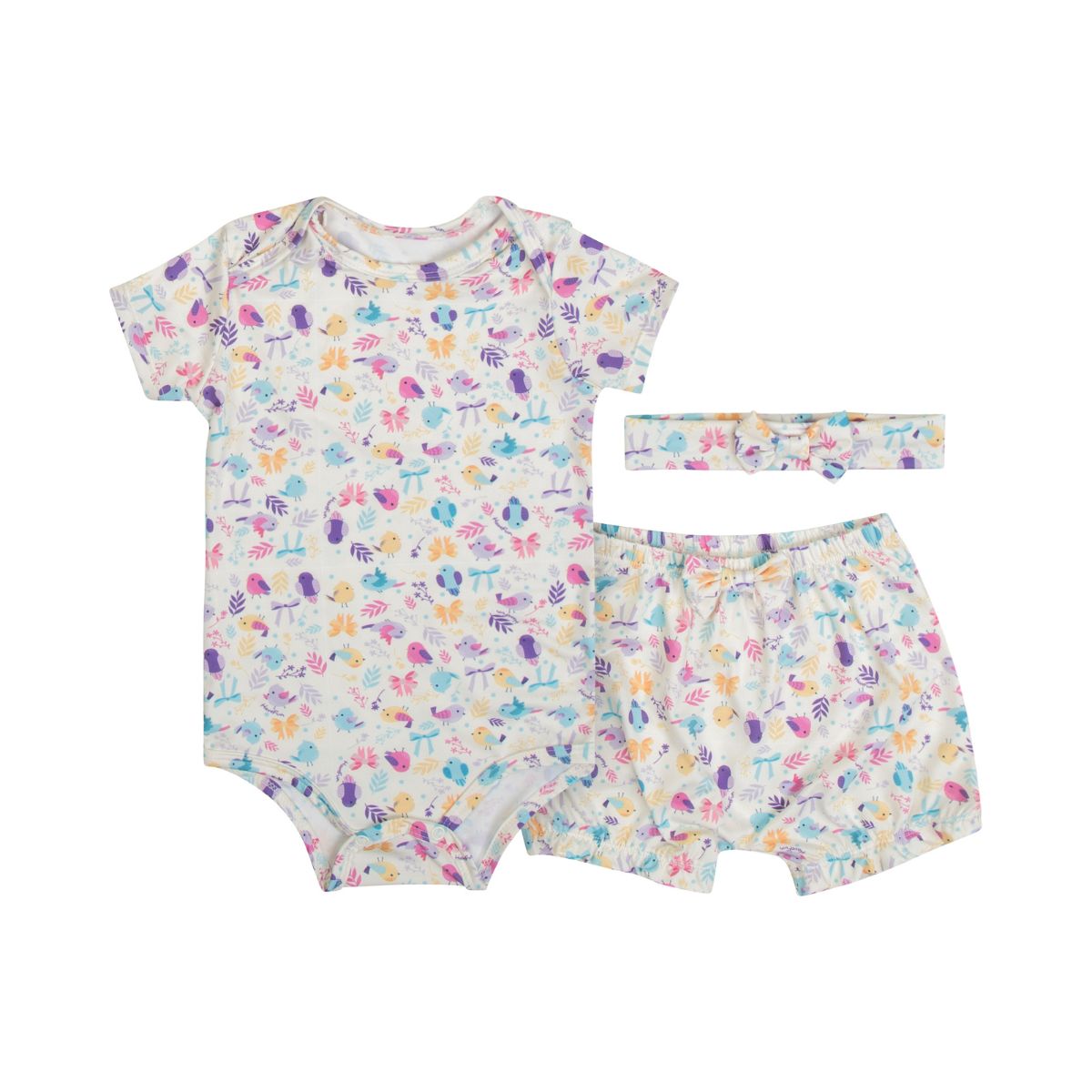 O Conjunto Spring Birds Off White da BB Chic é perfeito para deixar sua pequena ainda mais fofa, confortável e protegida nos dias mais fresquinhos. Composto por body de manga curta, shorts e faixa de cabelo, o look é confeccionado em malha térmica sublimada, que proporciona aconchego e liberdade de movimento.