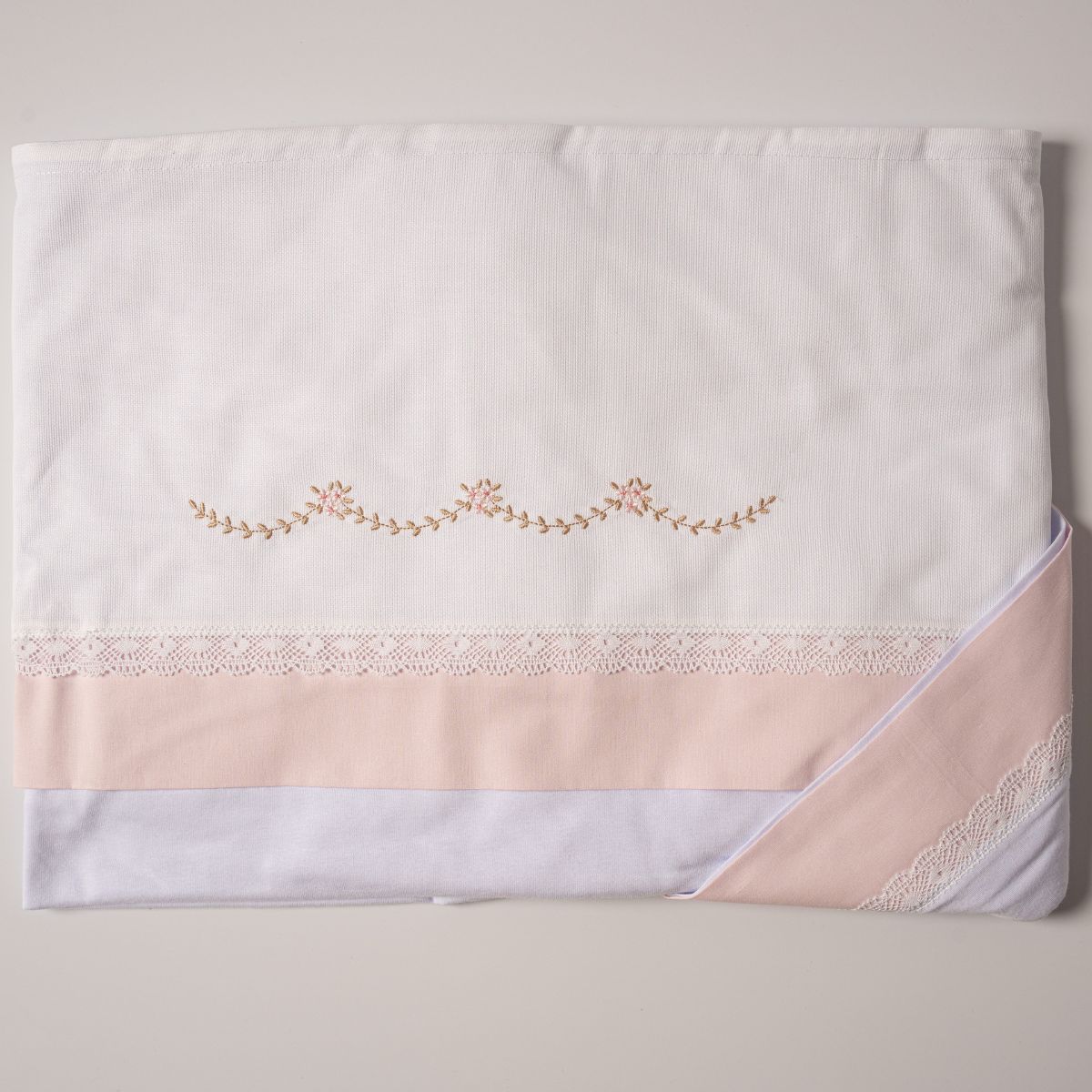Com delicado bordado na fronha e acabamento refinado em tom rosê, este jogo de lençol é composto por três peças que se ajustam perfeitamente ao bercinho. O toque suave da malha é ideal para a pele sensível dos recém-nascidos, criando um ambiente acolhedor e elegante no quartinho.