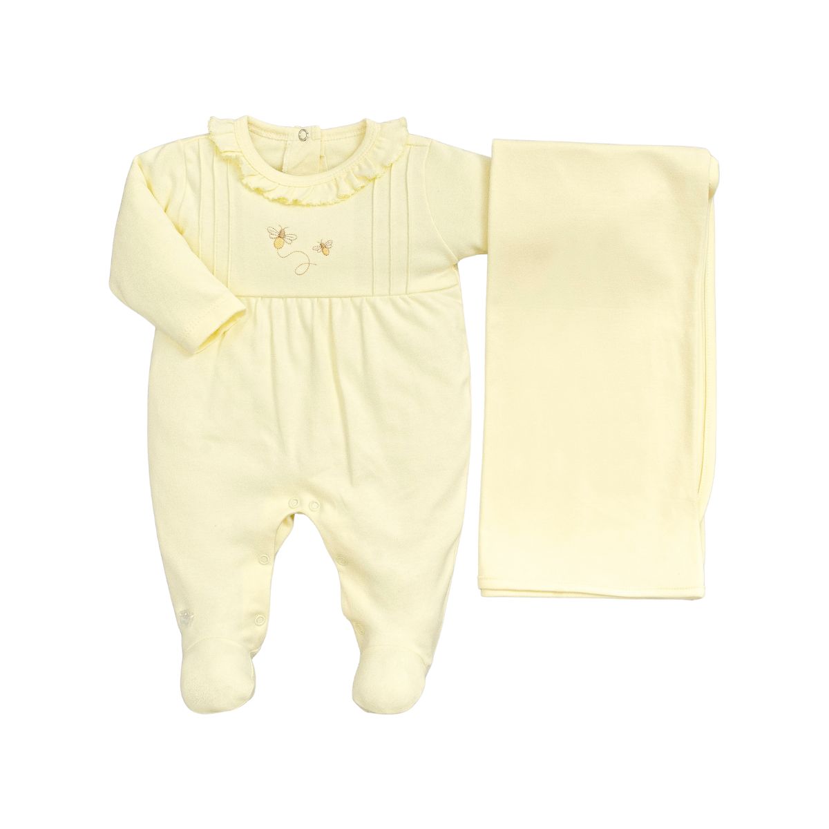 O Kit Macacão Longo Bordado com Manta Suedine Pima Amarelo traz um toque de delicadeza e sofisticação para o enxoval do bebê. Confeccionado em suedine pima, tecido nobre conhecido pela sua maciez incomparável e alta durabilidade, esse conjunto é ideal para proporcionar bem-estar e elegância nos primeiros dias de vida.