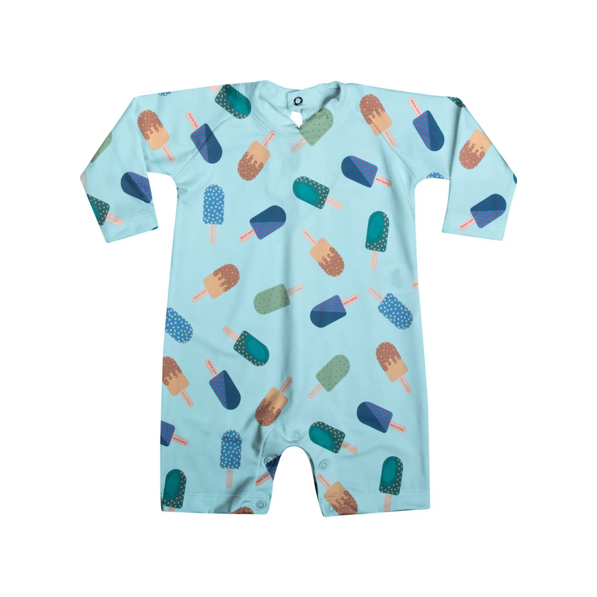 O Macacão Bebê Malha Proteção UV Azul da BB Chic é perfeito para proteger os pequenos nos dias ensolarados com muito charme e alegria. Com uma estampa vibrante de picolés sobre o fundo azul, a peça une estilo lúdico e funcionalidade, sendo ideal para passeios ao ar livre ou momentos na praia e piscina.