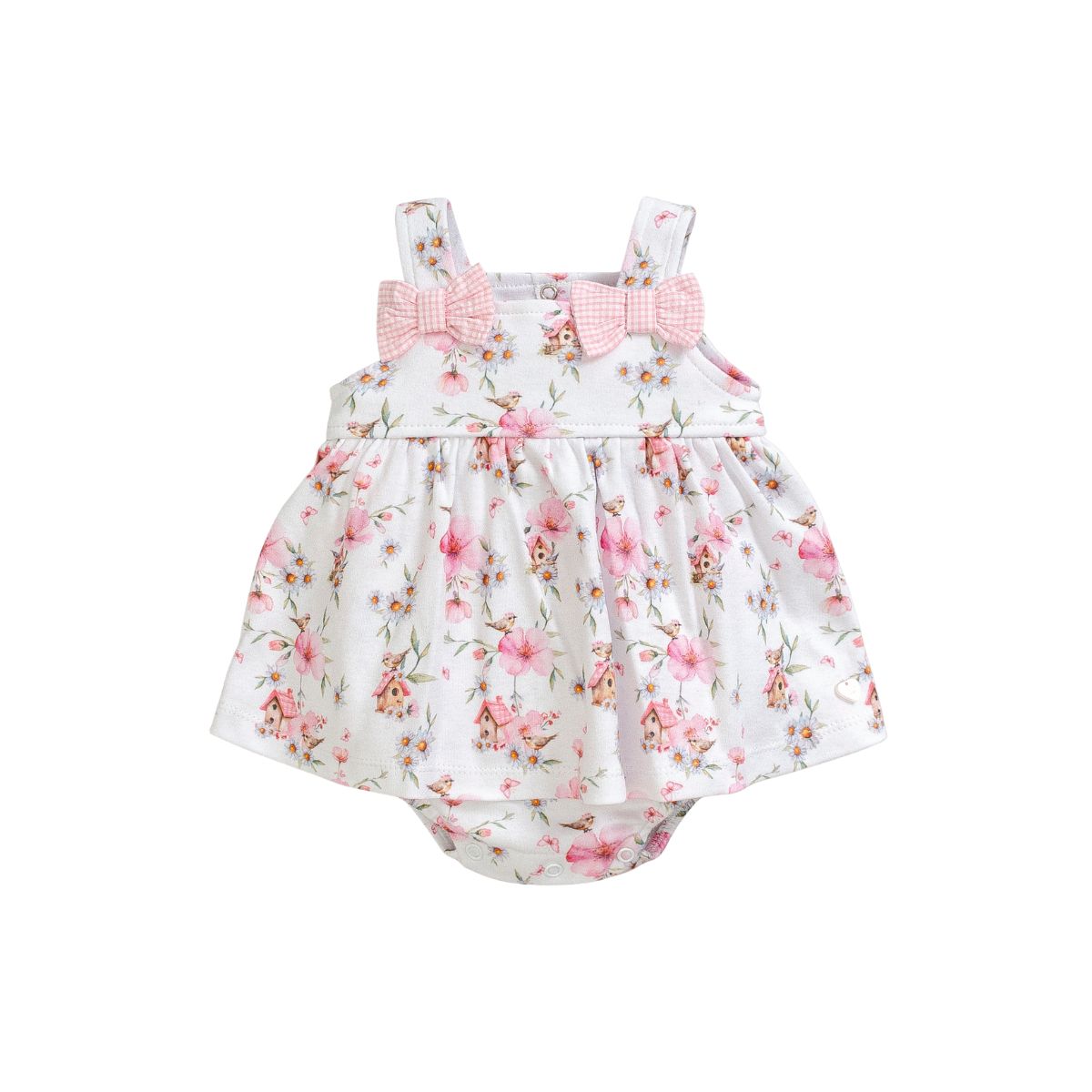 Feito em suedine leve, o modelo apresenta um tom de rosa suave e feminino, com manga curta e acabamento delicado, perfeito para as temperaturas do verão. Os botões de pressão no entrepernas facilitam as trocas de fralda, garantindo mais praticidade no dia a dia. Uma peça única que une charme, conforto e liberdade de movimentos.