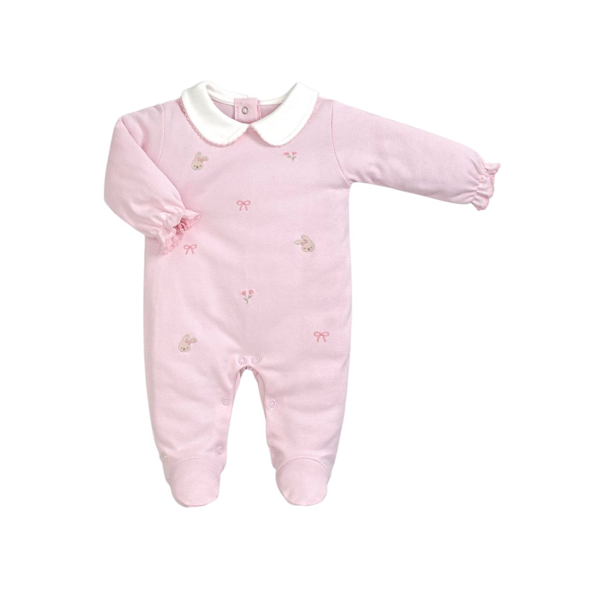 Confeccionado em tecido macio, o macacão proporciona conforto térmico e liberdade de movimento, mantendo a bebê aquecida com suavidade.