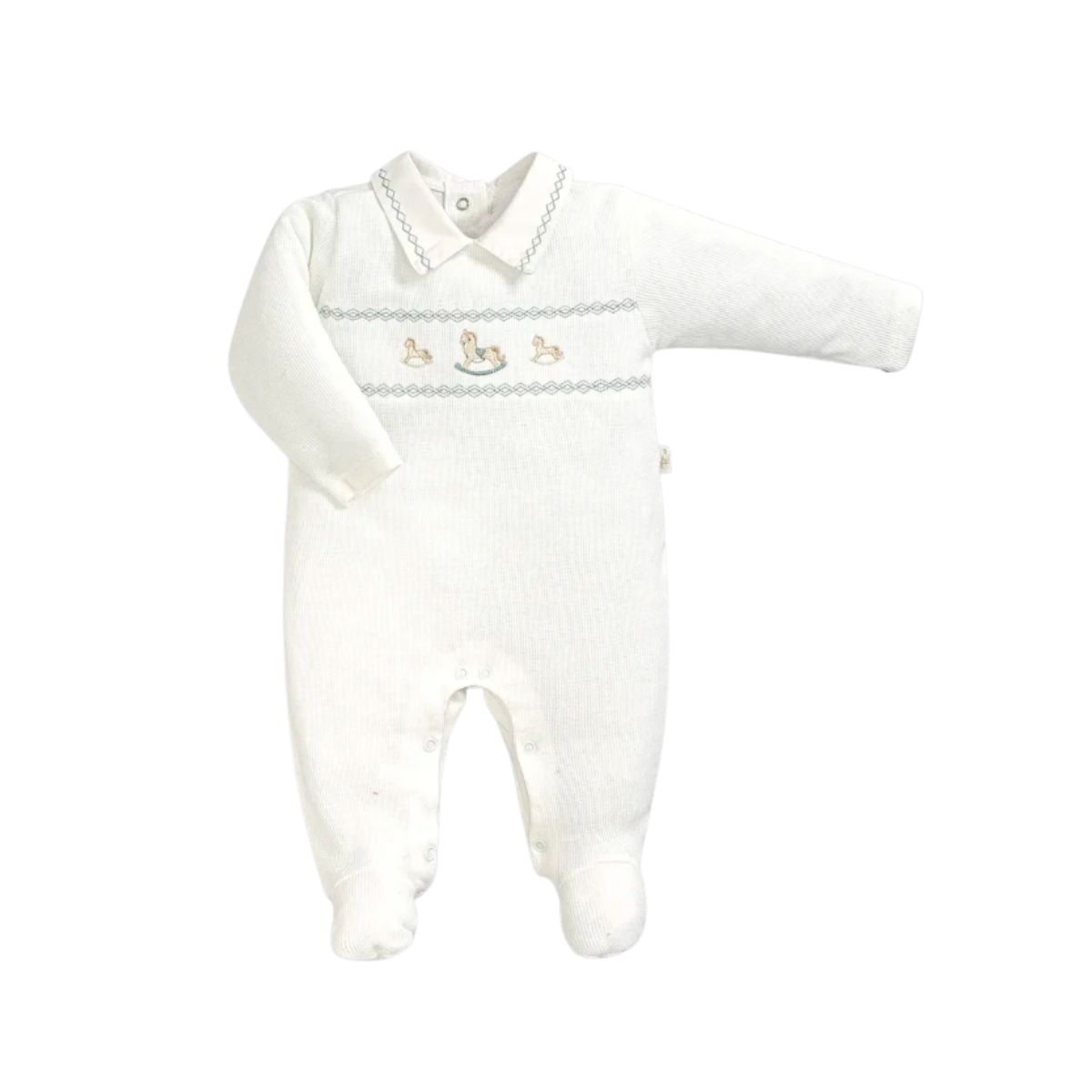 O Macacão Longo em Malha Tricot Bordado Menino é ideal para vestir o bebê com elegância, conforto e delicadeza, oferecendo um visual clássico e acolhedor para diferentes ocasiões.