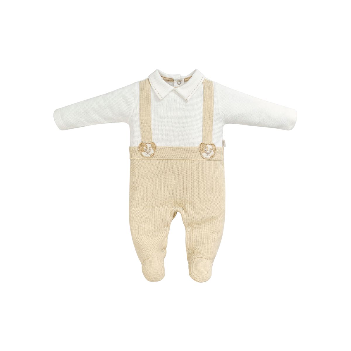 Com design diferenciado que imita jardineira, traz charme extra ao look, enquanto os detalhes bordados de cachorrinho tornam a peça ainda mais delicada. O modelo com pezinho ajuda a manter o bebê aquecido, e a abertura com botões de pressão facilita as trocas com rapidez e praticidade.