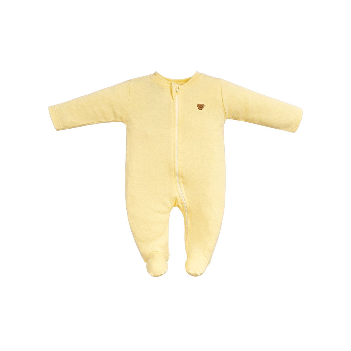 Com design clássico e elegante, esse macacão com pezinho traz praticidade e estilo em uma só peça. Seu fechamento frontal facilita a troca de roupas e fraldas no dia a dia, enquanto o tom amarelo suave transmite delicadeza e versatilidade, ideal para meninos e meninas.