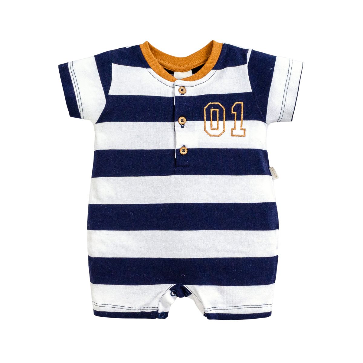 Produzido em tecido macio e confortável, o macacão garante liberdade de movimento, além de praticidade no dia a dia. O detalhe da numeração bordada no peito e atrás, os botões frontais deixam a peça ainda mais charmosa, enquanto os botões de pressão entrepernas facilitam a troca de fraldas.