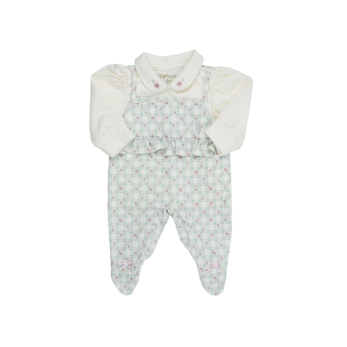 O Macacão Picnic Floral Xadrez Bege é uma peça delicada e encantadora, pensada para proporcionar conforto e charme aos primeiros meses do bebê.