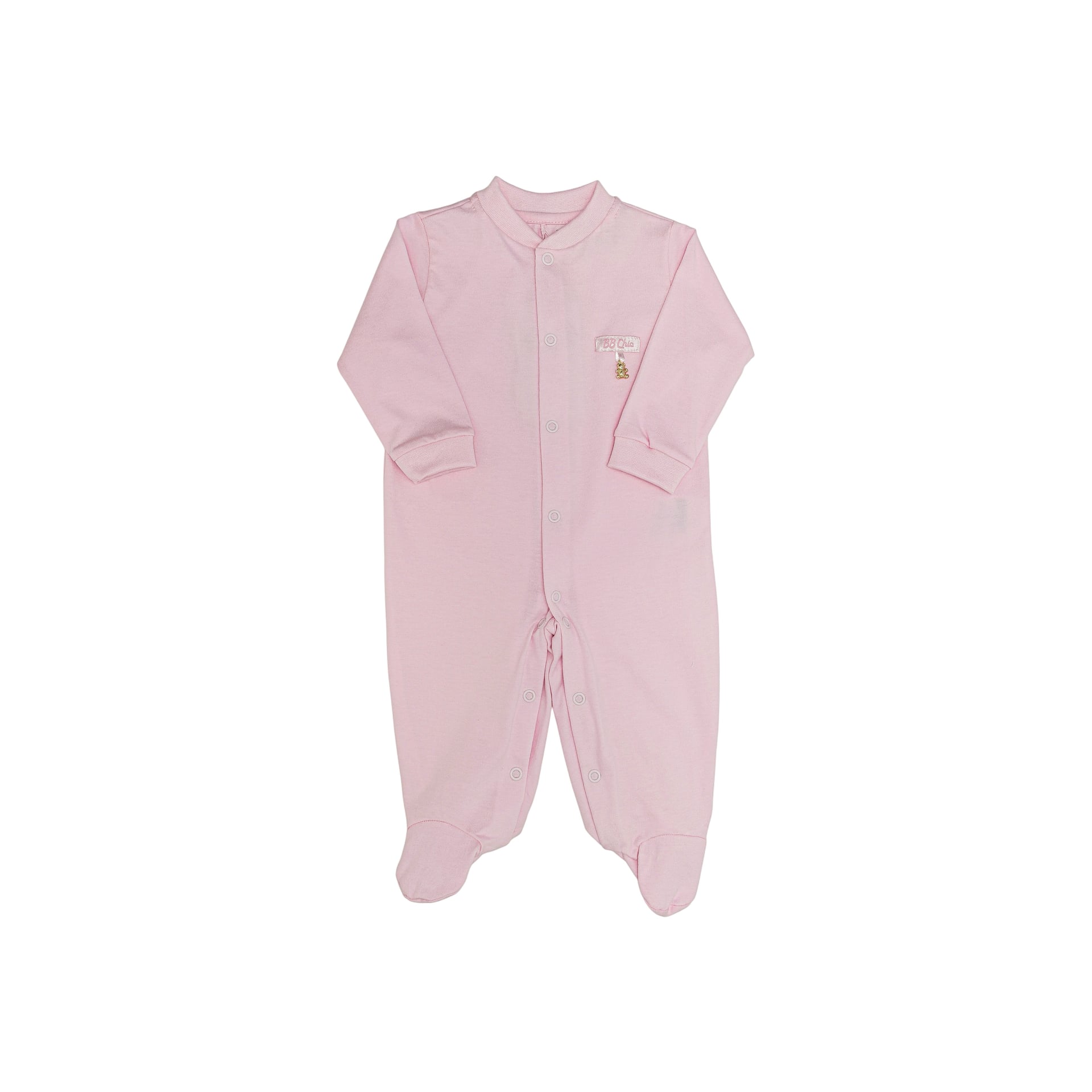 O destaque especial fica para o charmosa aplicação do pingente folheado a ouro em formato de ursinho, que acompanha a etiqueta exclusiva da BB Chic no peitinho. O fechamento frontal com botões de pressão facilita na hora de vestir e trocar a fralda, enquanto os punhos dobráveis e os pezinhos fechados garantem proteção completa.