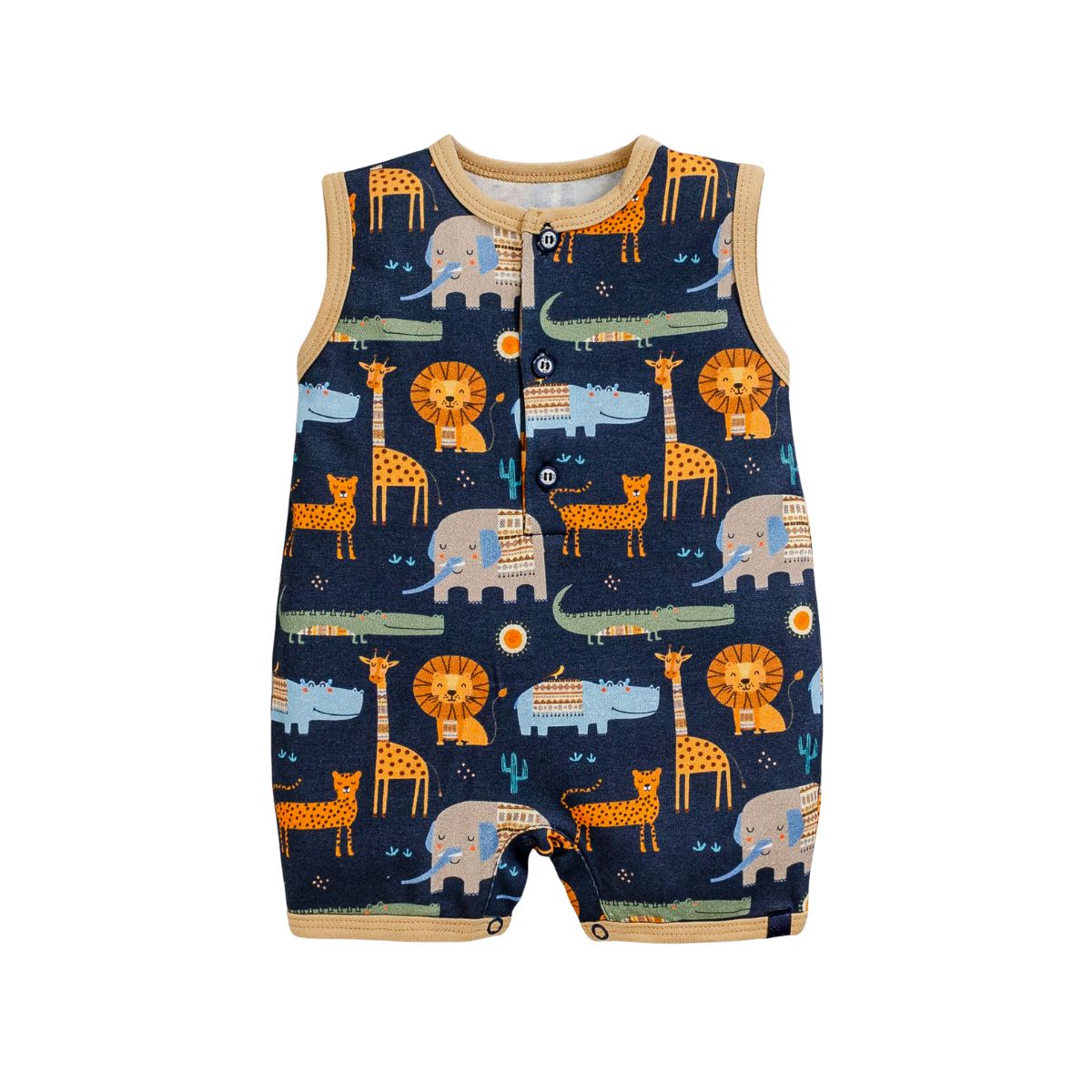 O Macacão Regata Suedine Safari Masculino Azul Marinho é a peça ideal para os dias mais quentes, oferecendo ao seu bebê o equilíbrio perfeito entre frescor, conforto e mobilidade. Em tom azul claro e tecido suave, ele traz um visual leve e delicado, perfeito para os primeiros passeios ou momentos de descanso.