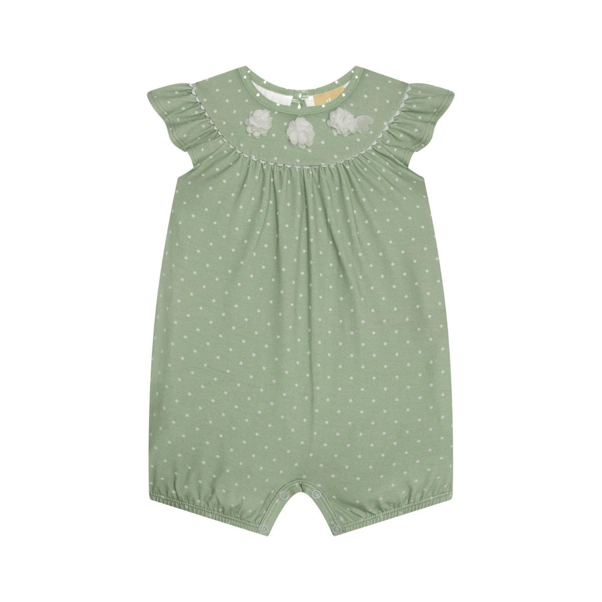 O macaquinho em cotton flores verde chá é uma peça leve e delicada, ideal para vestir o bebê com conforto em dias mais quentes.