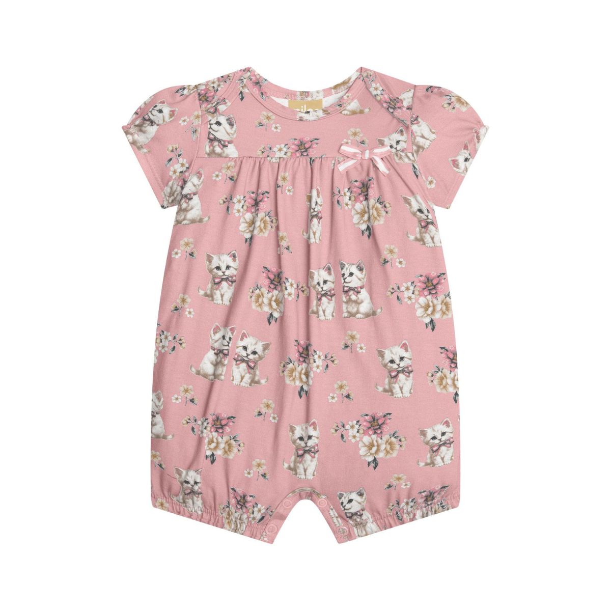 A estampa de gatinho deixa o visual ainda mais encantador, enquanto a modelagem facilita o vestir e acompanhar os movimentos naturais do bebê, tornando a rotina dos adultos mais prática também.