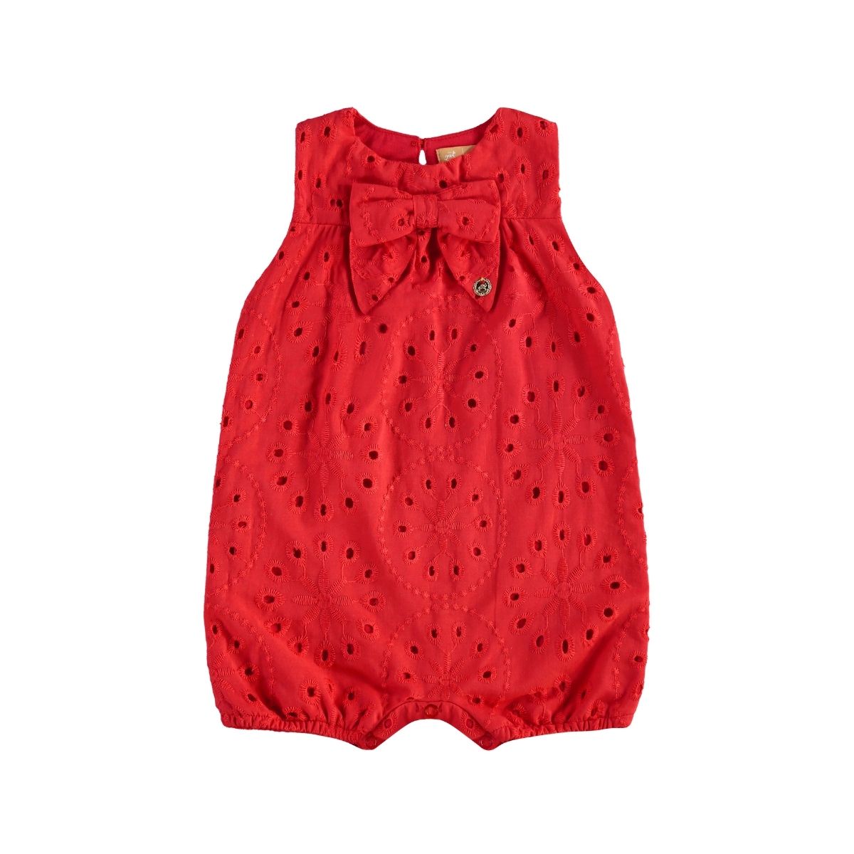 Garanta já o Macacão Infantil Vermelho em Laise e vista sua pequena com a combinação perfeita de conforto e delicadeza.