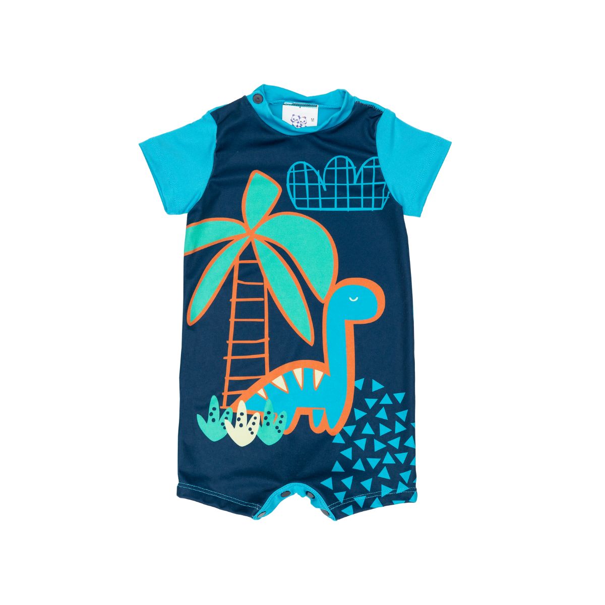 Confeccionado em tecido leve e com proteção UV50+, ele bloqueia os raios solares, mantendo a pele delicada do bebê protegida. O modelo possui mangas curtas, fechamento prático por botões de pressão e uma estampa divertida de dinossauro tropical que encanta mamães e pequenos.