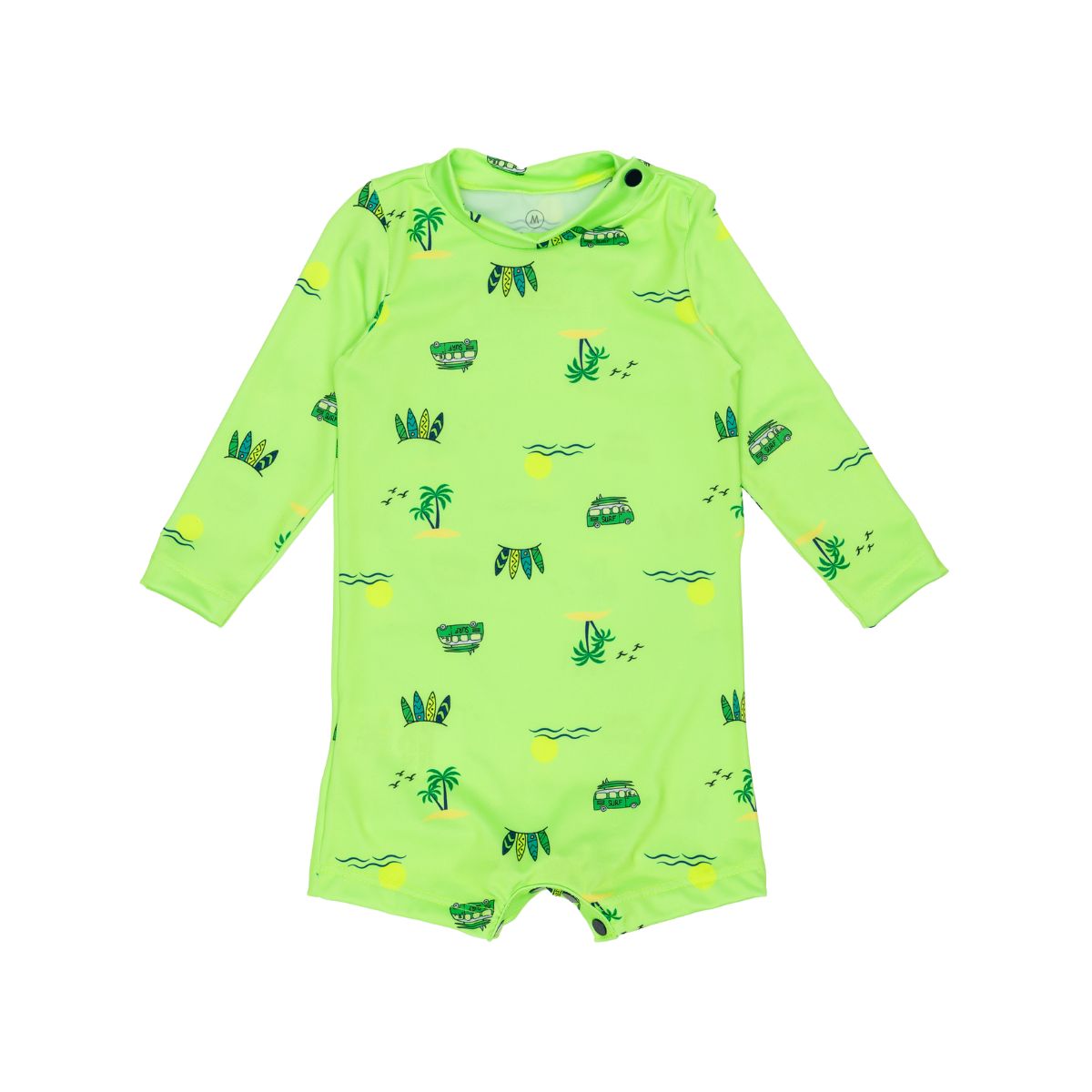 O Macaquinho Manga Longa Proteção UV Neon Praia Verde é perfeito para acompanhar os pequenos em dias ensolarados com conforto e liberdade para brincar.