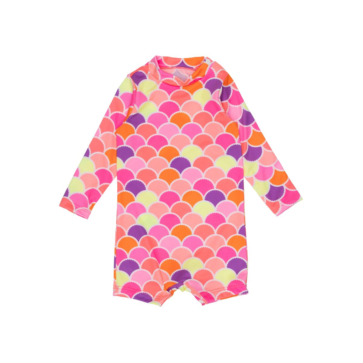 Confeccionado em tecido leve, elástico e com proteção UV50+, ele bloqueia até 98% dos raios solares, garantindo proteção total à pele sensível da criança. O modelo possui mangas longas, fechamento prático por botões de pressão e uma estampa neon de escamas de sereia — que trazem o clima do verão em cada detalhe!