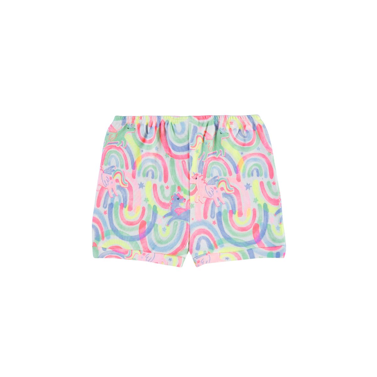 Disponível em diversas estampas e cores suaves — unicórnio azul, floral verde, dino off white e abelha rosê — o short traz um toque alegre e delicado, perfeito para compor looks confortáveis e cheios de charme.