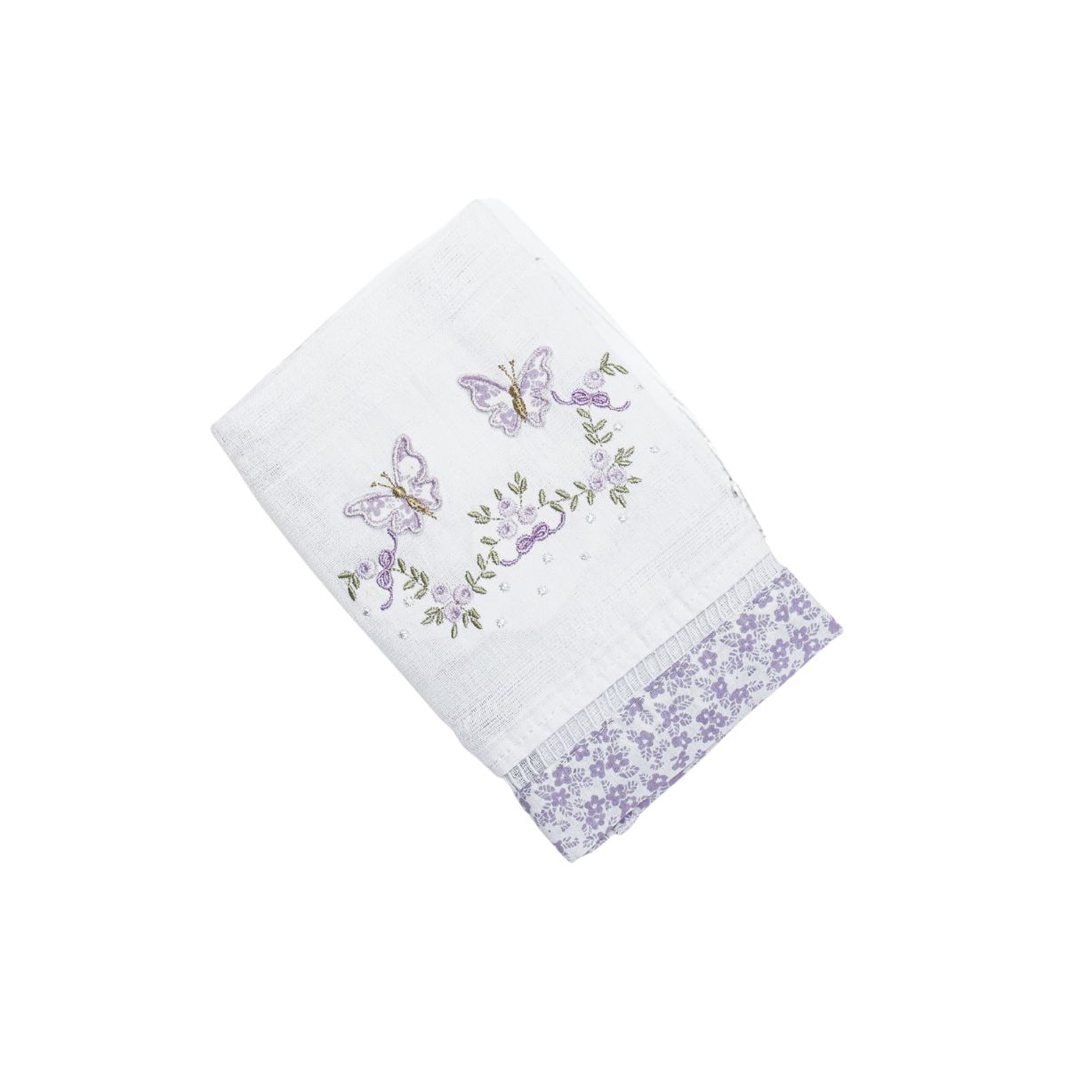 O bordado de borboletas central e o detalhe em tecido floral lilás acrescentam um charme encantador à peça, tornando cada momento ainda mais especial. Compacta, prática e linda, ela é ideal para ter sempre por perto nos cuidados com o bebê.