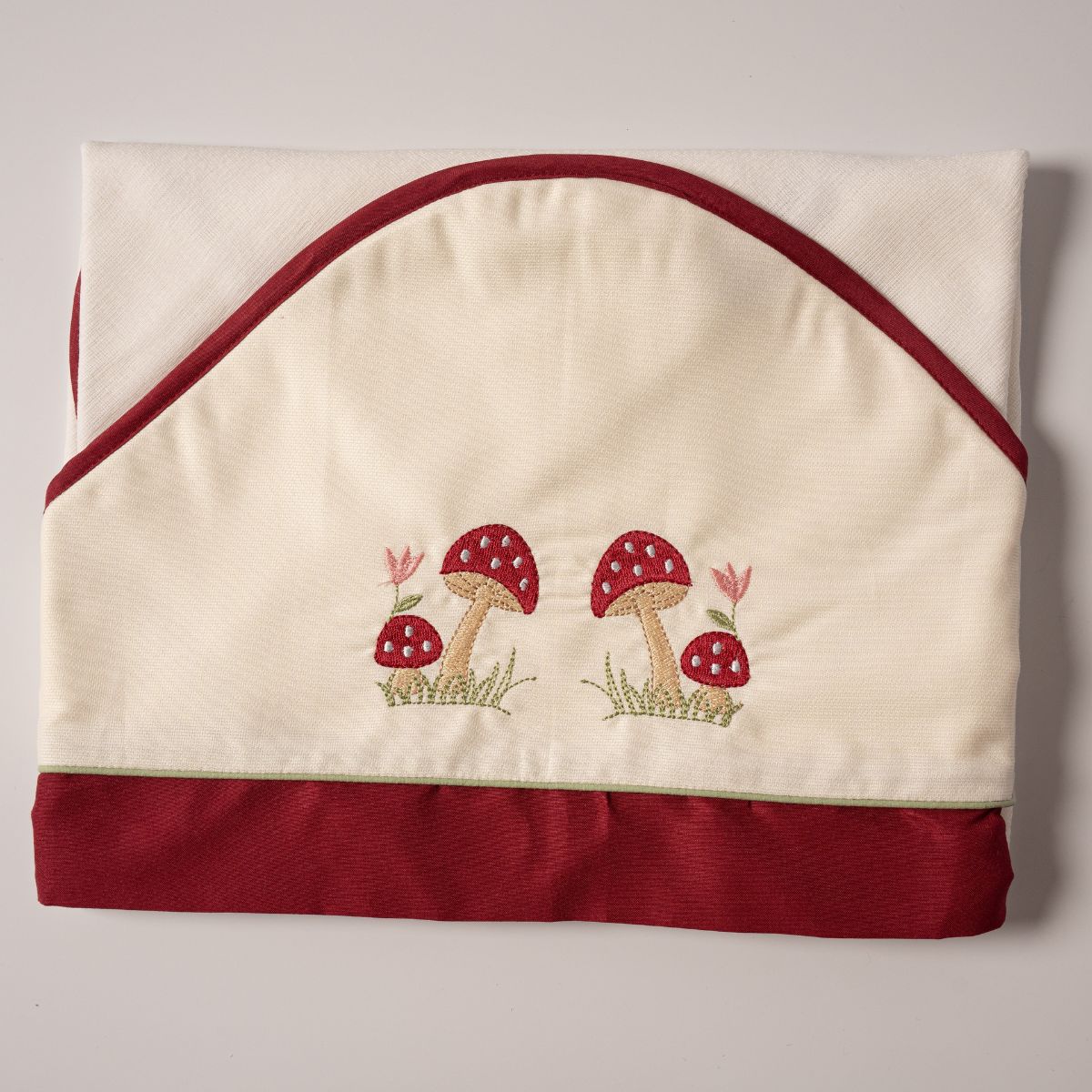Toalha Felpa Forrada com Fralda e Capuz Cogumelo Vermelho da BB Chic foi pensada para envolver os pequenos com suavidade e segurança na hora do banho. Com toque macio e absorvente, ela combina a praticidade da felpa com a delicadeza da fralda de algodão, criando uma experiência acolhedora para a pele sensível dos bebês.