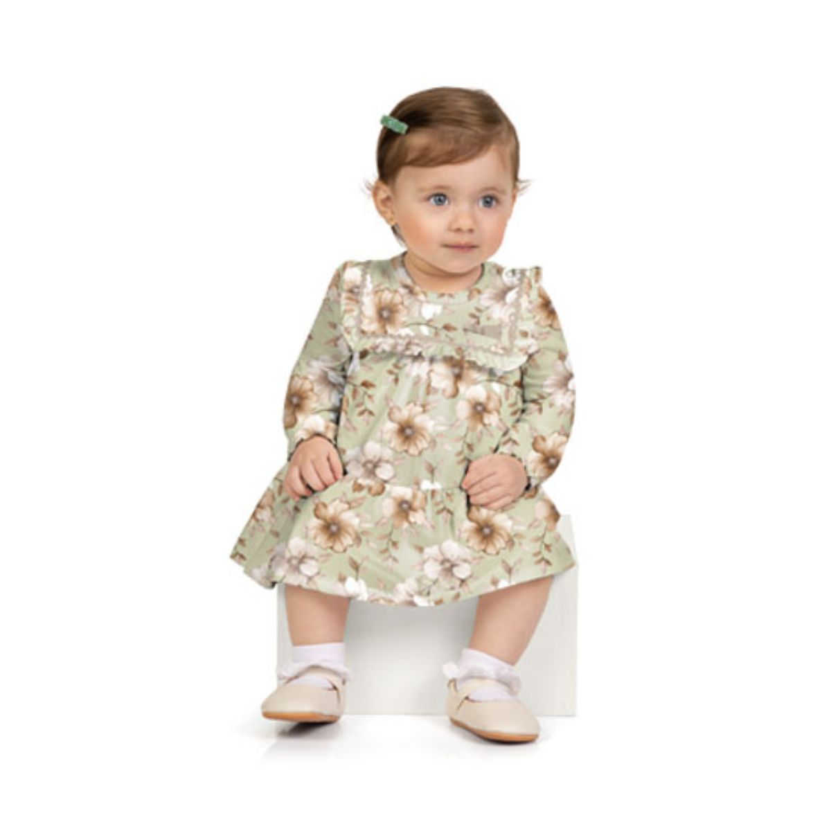O Vestido Bebê com Body Verde Orvalho BB Chic é a escolha perfeita para deixar sua pequena confortável, delicada e cheia de estilo em qualquer ocasião.