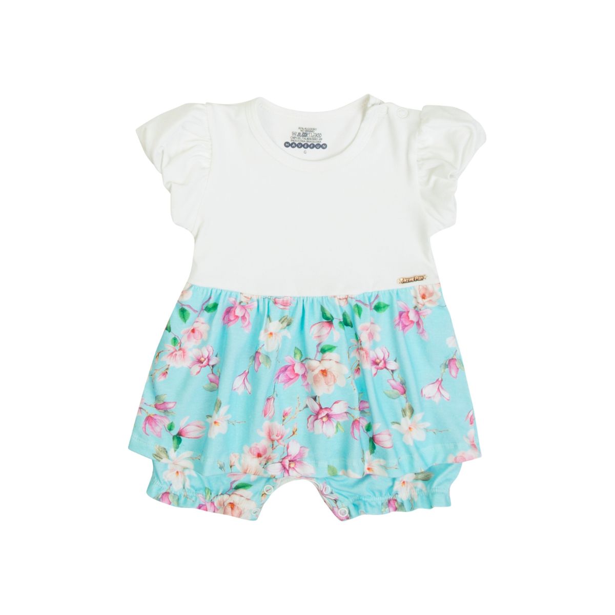 A peça conta com shorts embutido, oferecendo mais liberdade e segurança para que a bebê possa se movimentar com conforto. A parte superior tem um visual delicado e romântico, com manguinhas franzidas, enquanto a saia floral traz um toque divertido e elegante.