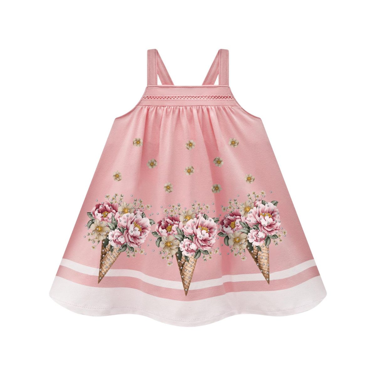 O Vestido Infantil Floral Rosas é pura delicadeza para a sua pequena! Com modelagem soltinha e confortável, ele traz uma estampa exclusiva de flores em casquinhas de sorvete, combinando encanto e modernidade em uma única peça.