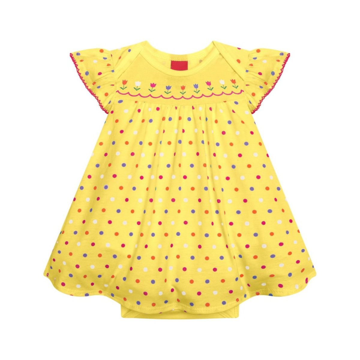 Vestido Infantil Poá com Bordado Floral e body embutido é a combinação perfeita entre delicadeza e alegria. Seu design traz estampa divertida de poás coloridos em toda a peça, complementada por um lindo bordado floral na parte superior, que confere ainda mais charme ao visual.