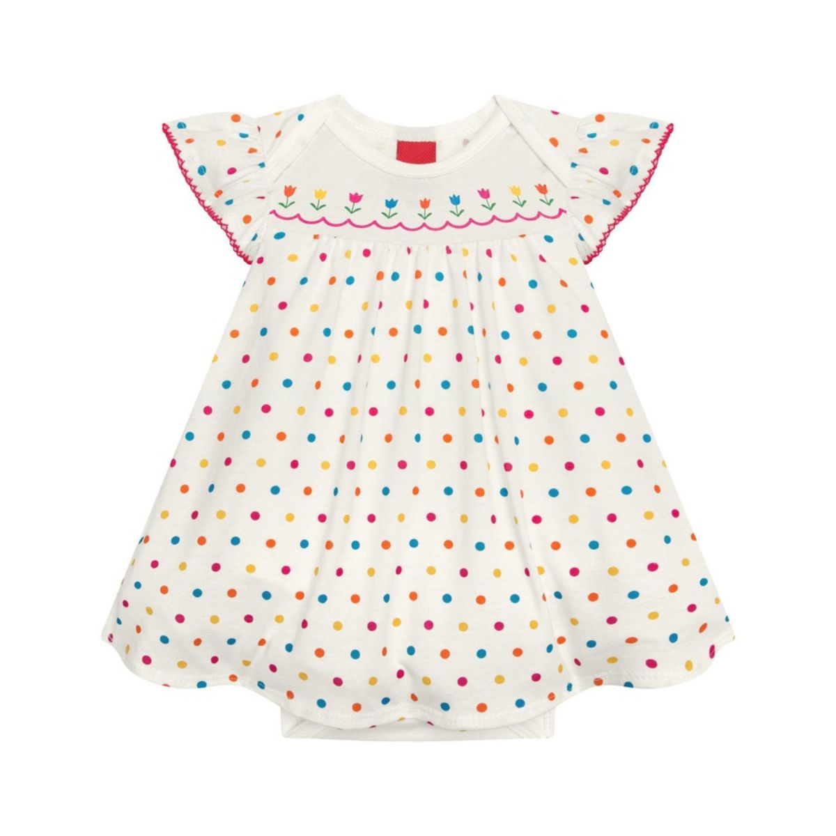 Vestido Infantil Poá com Bordado Floral e body embutido é a combinação perfeita entre delicadeza e alegria. Seu design traz estampa divertida de poás coloridos em toda a peça, complementada por um lindo bordado floral na parte superior, que confere ainda mais charme ao visual.