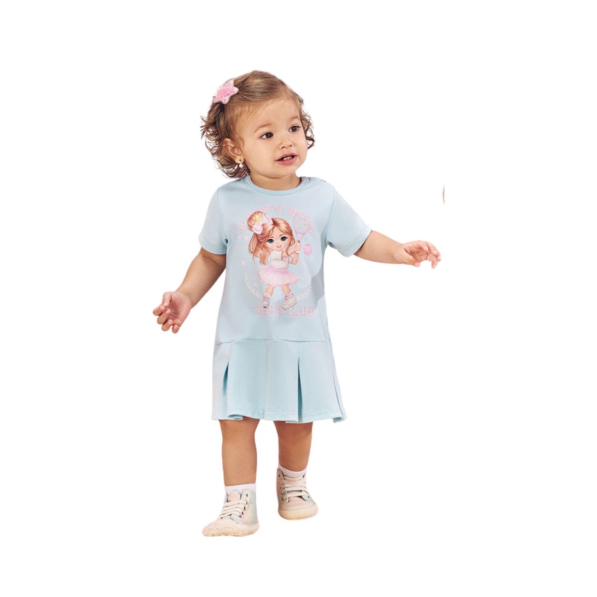 O Vestido Infantil Tênis Club Azul é perfeito para as pequenas que amam conforto, estilo e um toque divertido no look do dia.